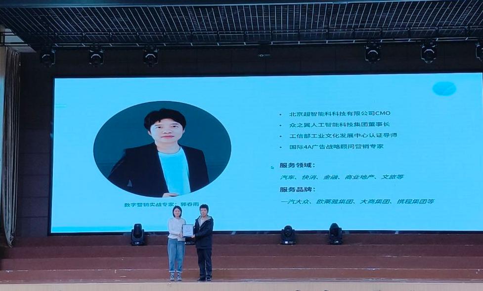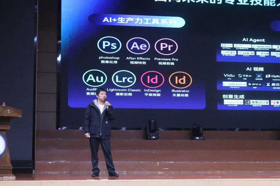 讲座中,郭春雨结合AI技术发展历程与行业应用案例,指出“未来的职业竞争力不在于是否被AI替代,而在于能否善用AI提升效能”。他进一步强调,在AI普及的时代,人类的创造力、沟通能力与批判性思维将成为关键优势,鼓励学生在掌握技术工具的同时,注重培养综合素养与跨界整合能力。