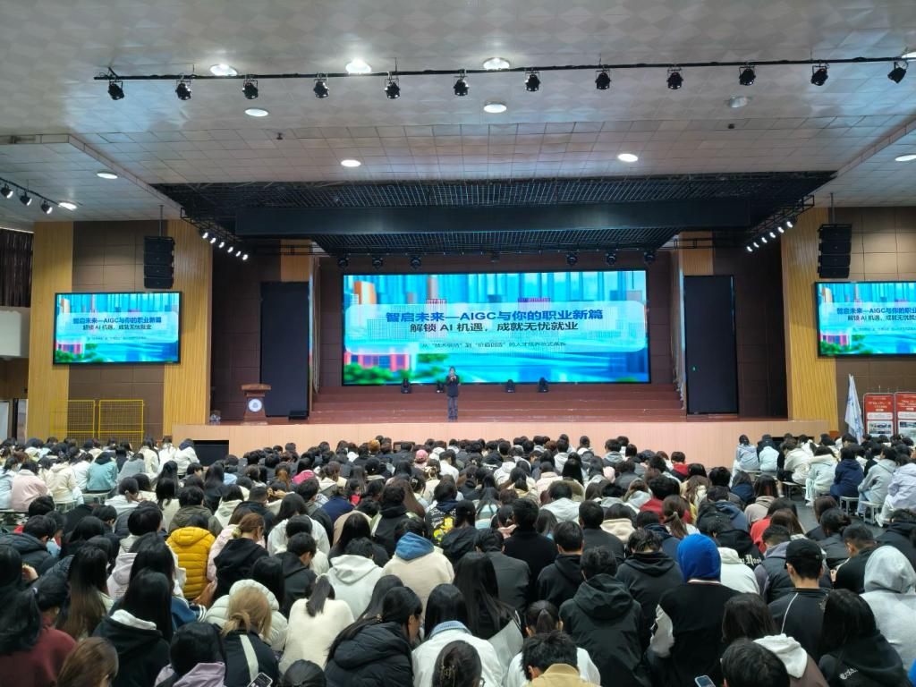 为积极响应国家“人工智能+”行动号召,深化产教融合,助力高素质应用型人才培养,2025年11月14日,绵阳城市学院现代产业学院在游仙校区举办“企业家进校园——创新创业系列讲座”。众之翼人工智能科技集团董事长郭春雨先生应邀作为主讲嘉宾,以“智启未来AIGC与你的职业新篇”为题,为全校师生带来一场聚焦AI时代就业趋势与能力构建的专题分享。